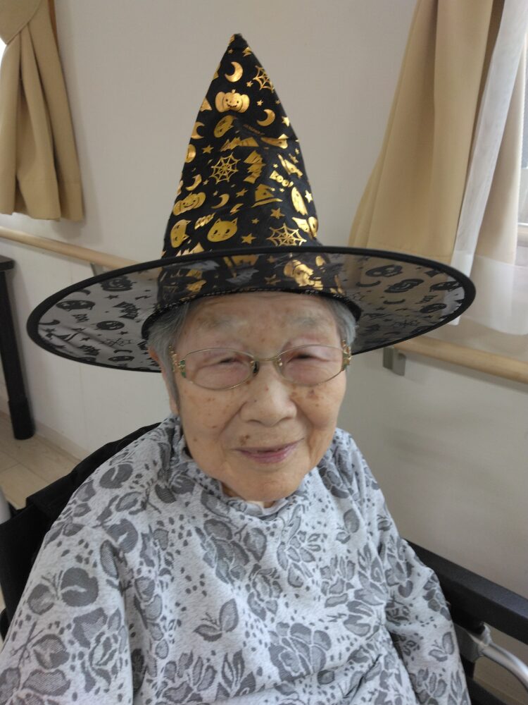 ハロウイン風の帽子をかぶって写真を撮り💕