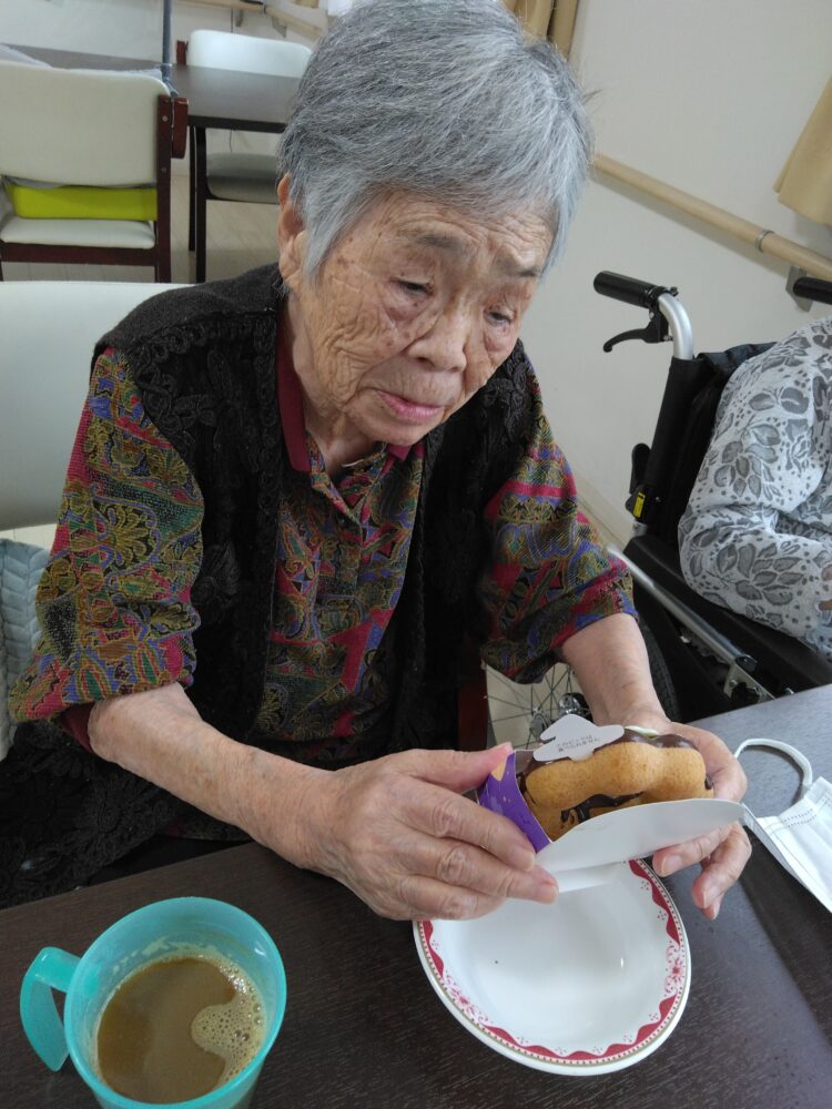 ド-ナッツを一口食べると美味しいよと笑顔が溢れ喜ばれみなさん完食されて嬉しいですね💕💕💕