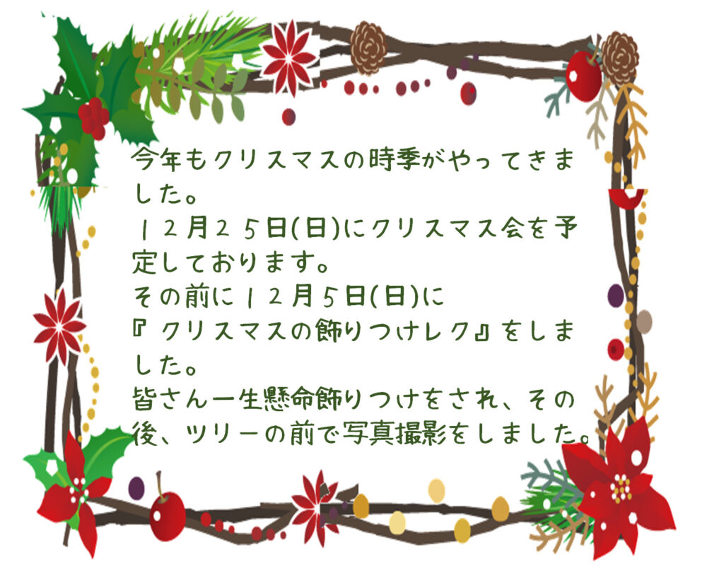 令和4年12月5日(日) 『クリスマス飾りつけレクレーション』