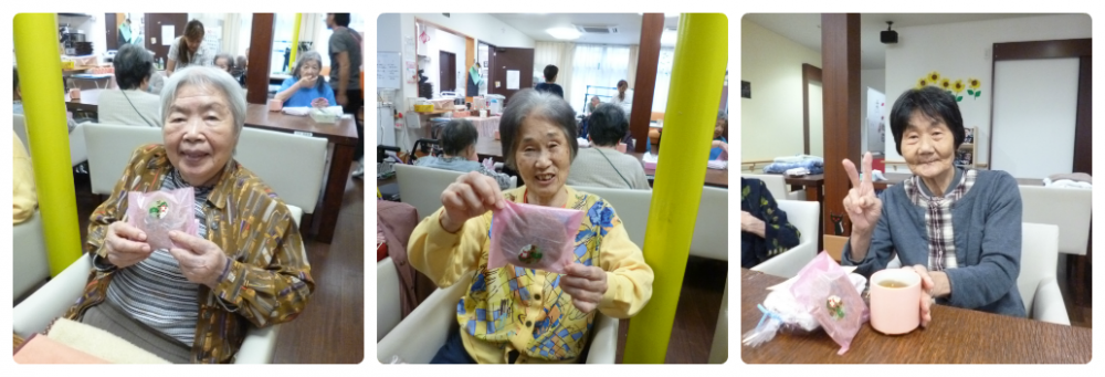 2019.10.02 ハートリンク岩国柱野 敬老の日 9月15日にお祝いをしました。 おやつにどら焼きをみんなで食べました。 スタッフ一同より、ささやかなプレゼントもあったのですが、 皆さん、どら焼きに夢中になっておられました(*´▽`*) おやつ後、プレゼントを開けて喜んでおられました(*´▽`*) 敬老の日、おめでとうございます(^▽^) これからも、一緒に元気に楽しく過ごしていきましょう♪ 一覧ページに戻る