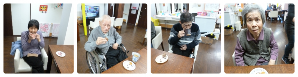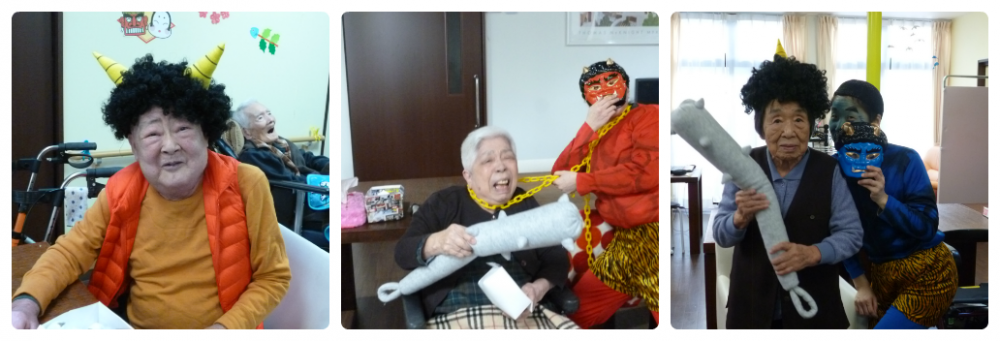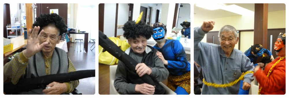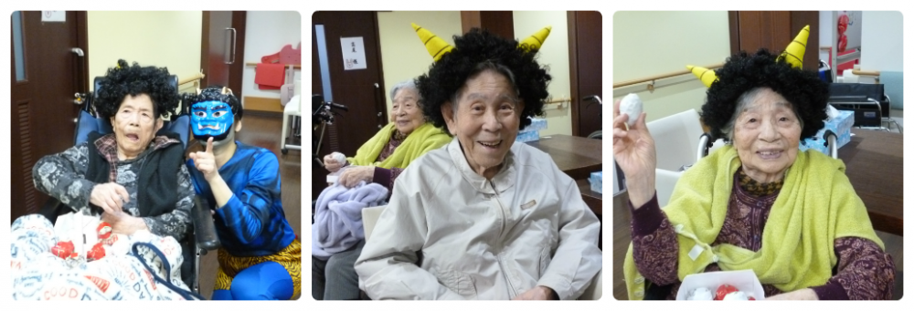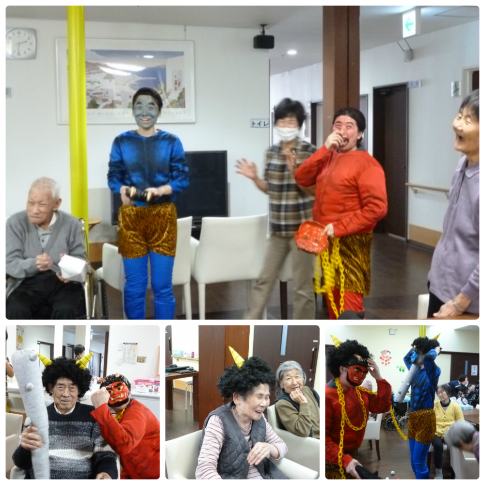 2019.02.19 ハートリンク岩国柱野 節分 2月1日 ひとあし早く ハートリンク岩国柱野にも 鬼がやってきました! 最初にスタッフが豆まきの言い伝えについてお話しし、クイズのあと さあ、豆まきです!! みなさん!! 日頃のうっ憤がたまっている方、たまっていない方もそれなりに・・・思いっきり!! スタッフ2名が 赤鬼 青鬼 で登場です さて誰でしょうか?? あれ??みなさん とても優しいですね(*^。^*) 💛お楽しみのスイーツ💛あんマカロンでかわいい鬼のできあがりです(^^♪ 新入居者さんのご紹介です。笑顔がとても素敵です!! 一覧ページに戻る