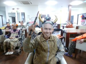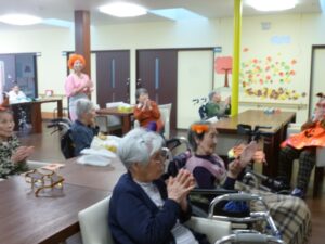 入居者さま・スタッフ一同、仮装して、カラオケを楽しみました。