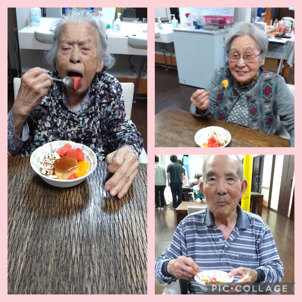 おやつにはプリンとフルーツ盛り合わせ🍇🍓