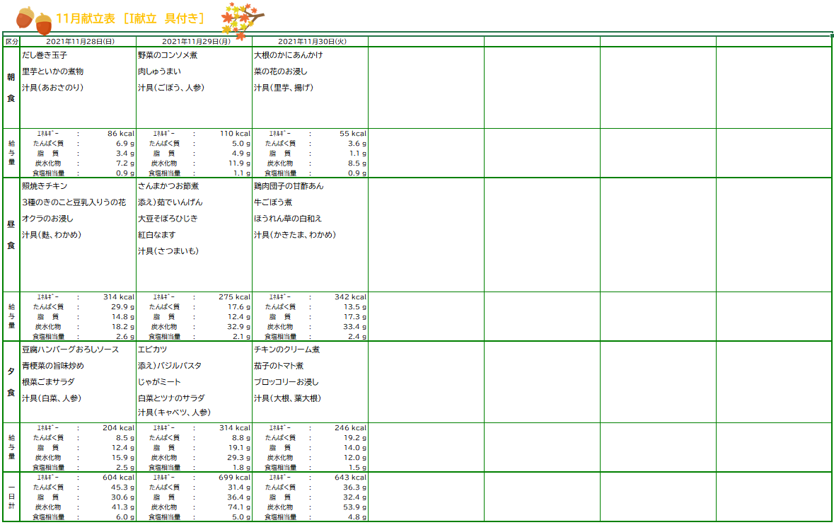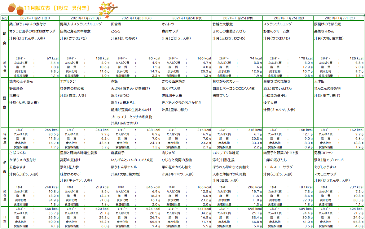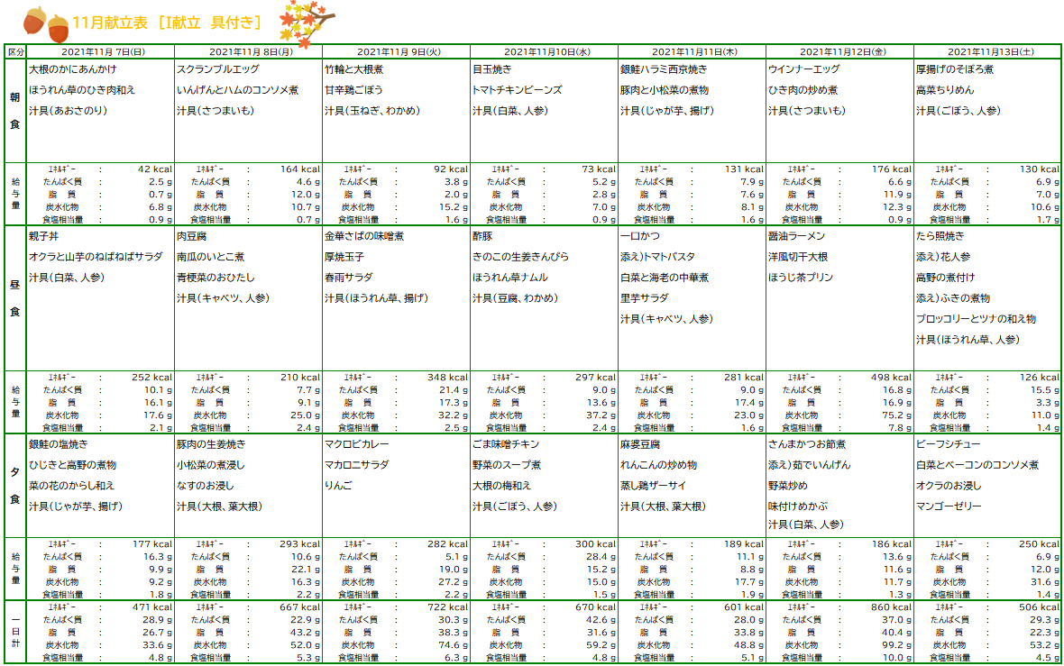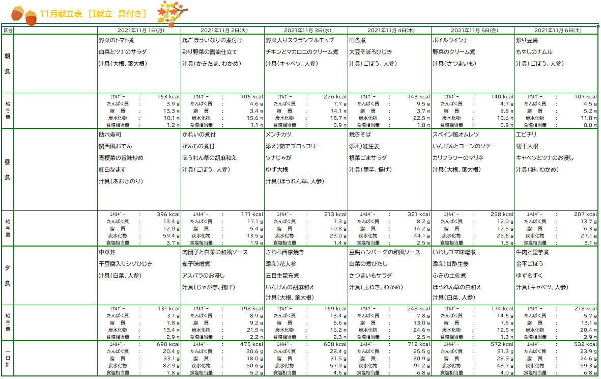 10月お誕生日&11月献立表