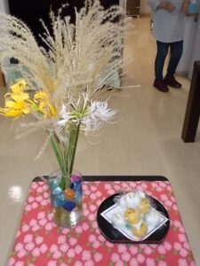 リビングに、スタッフ提供のススキと彼岸花を飾り、雰囲気バッチリ(*^。^*)