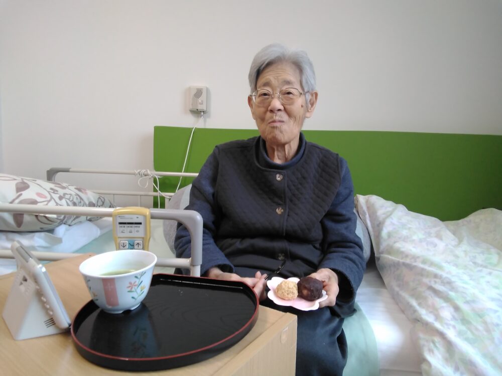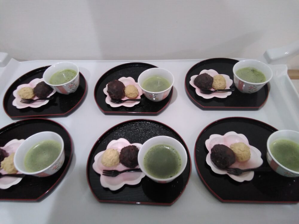 本日はスタッフ手作りのおはぎとお抹茶を召し上がって頂きました。