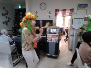 女性スタッフがザ・ピーナッツの歌と踊りを披露