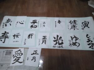 そのあと、新年の抱負や好きな言葉で書初め。