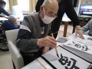 そのあと、新年の抱負や好きな言葉で書初め。