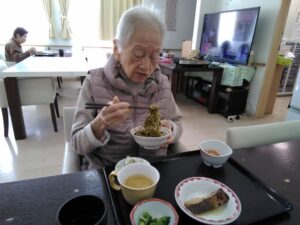 本日は山口名物の瓦そばを入居者様にも手伝って頂き作りました。