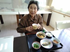 本日は山口名物の瓦そばを入居者様にも手伝って頂き作りました。