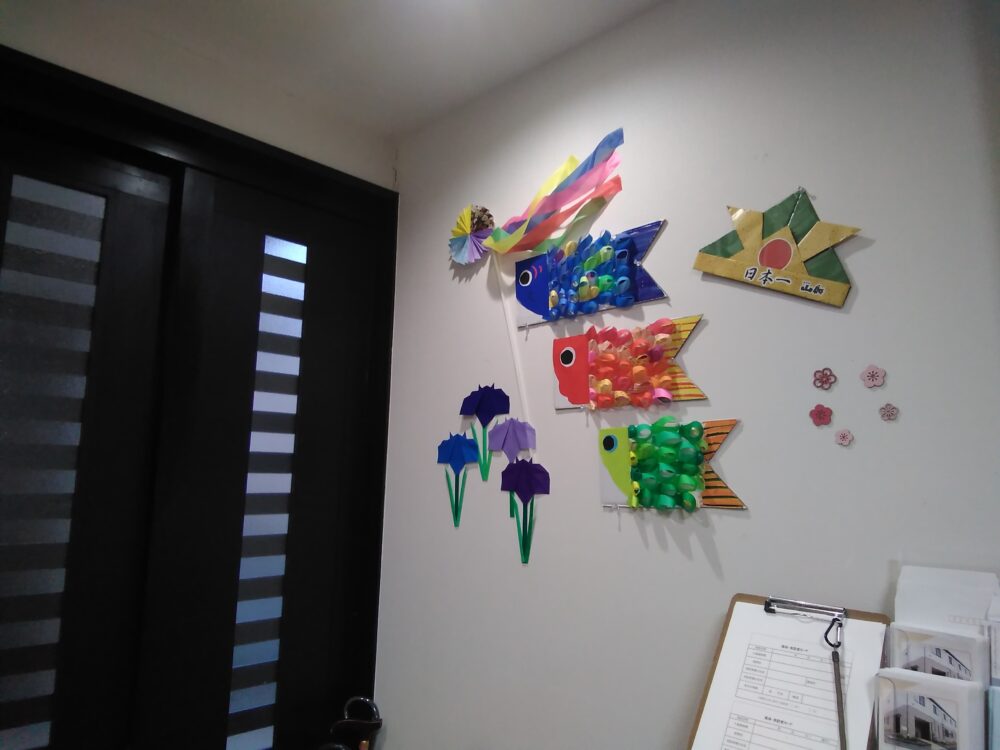 端午の節句の飾りつけを入居者様と一緒にさせていただきました(^^♪