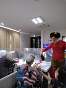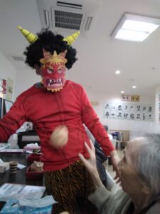 鬼に向かって容赦なく豆を投げつけストレス解消( ゚Д゚)