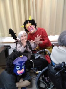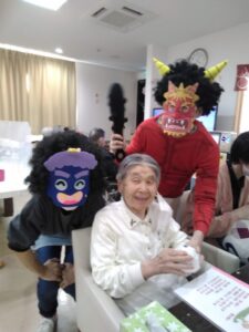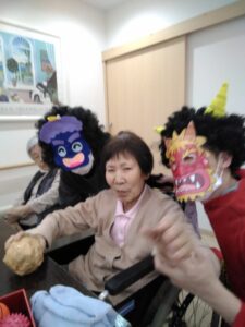 鬼に向かって容赦なく豆を投げつけストレス解消( ゚Д゚)