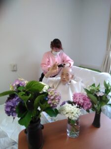 待ち時間の間はスタッフ持参のあじさい鑑賞で目の保養(^^♪
