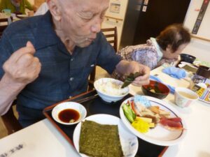 2020.09.24 ハートリンク西尾 ~手巻き寿司~ こんにちは(*ノωノ) ハートリンク西尾です(^^♪ 利用者様からのリクエストが多かった手巻き寿司をしました!(^^)! 皆さん喜んで下さり、おかわりが相次いでいました(*^▽^*) 一覧ページに戻る