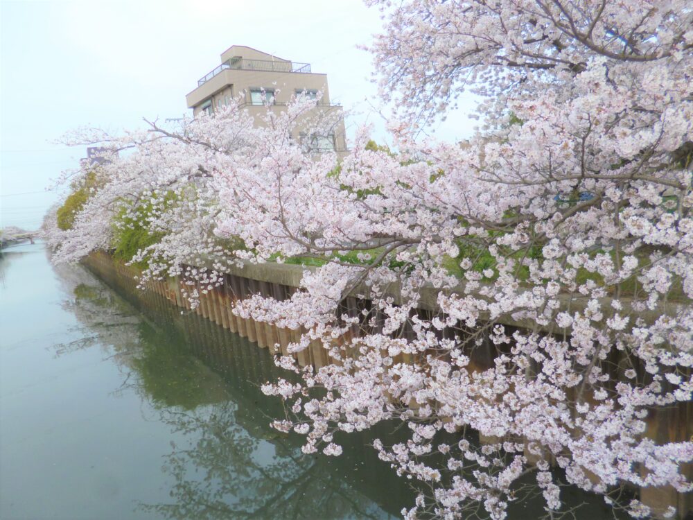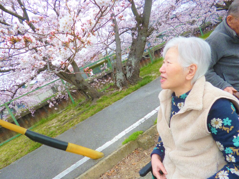 施設裏の桜並木がとても綺麗で