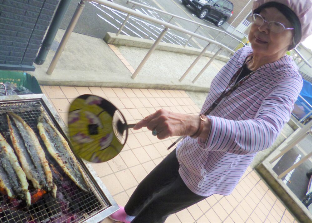 炭火で焼いていると皆さん「いい匂い~。何してるの?😋」と