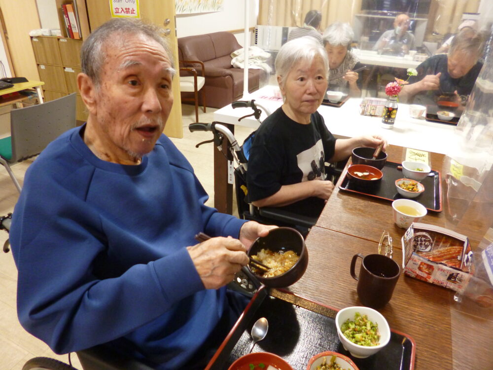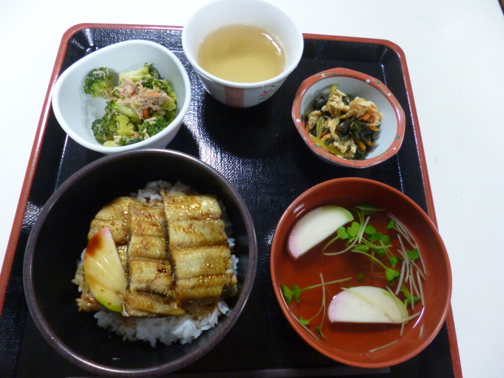 昼食でうな丼を召し上がって頂きました☺
