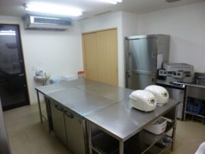 こちらは厨房になります。スタッフが朝昼夕と厨房でご飯を作っています。