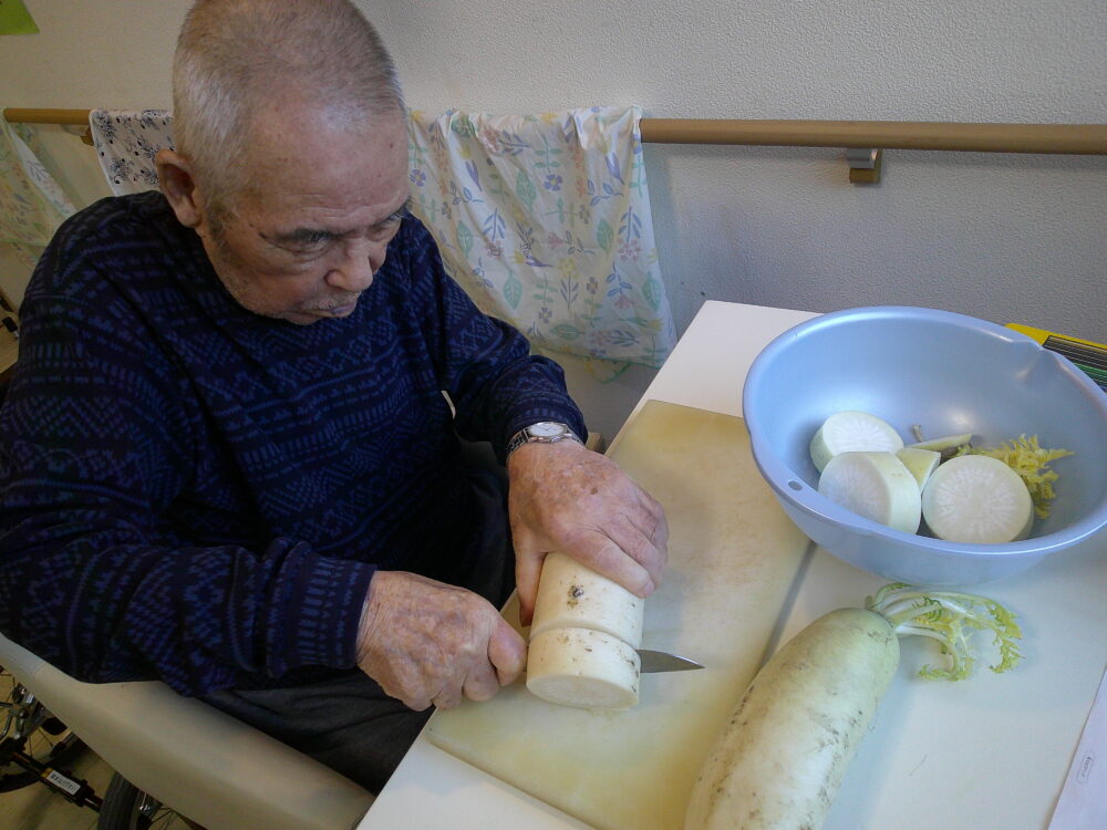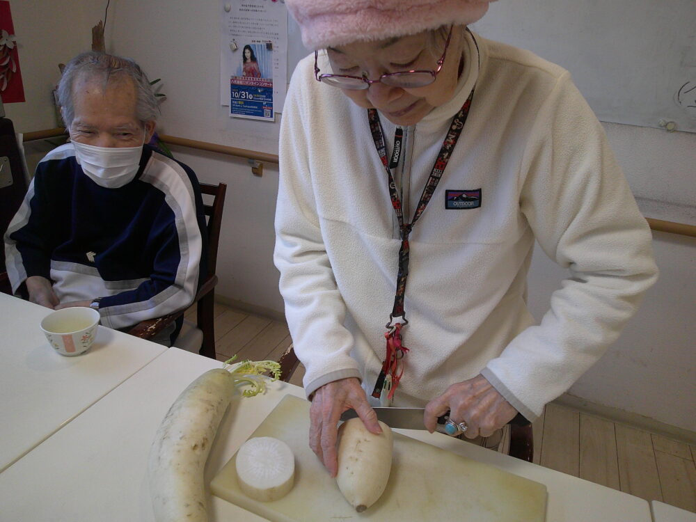 まずは、おでんの大根を切って頂き