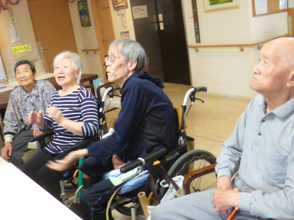 と利用者さん同士で声をかけながら楽しむことが