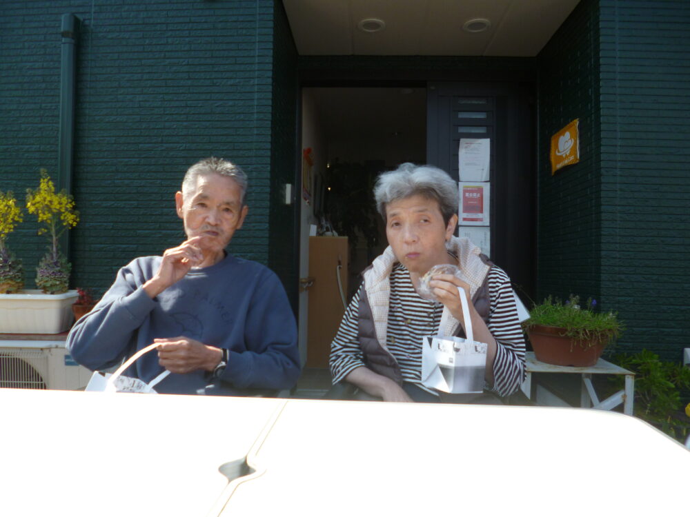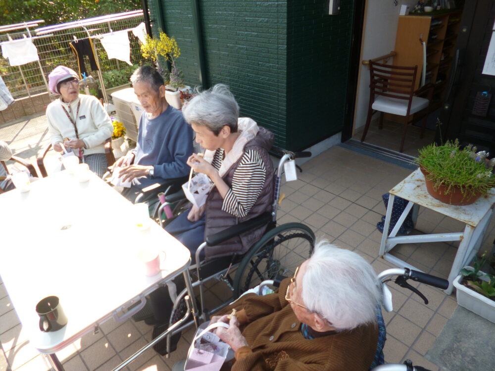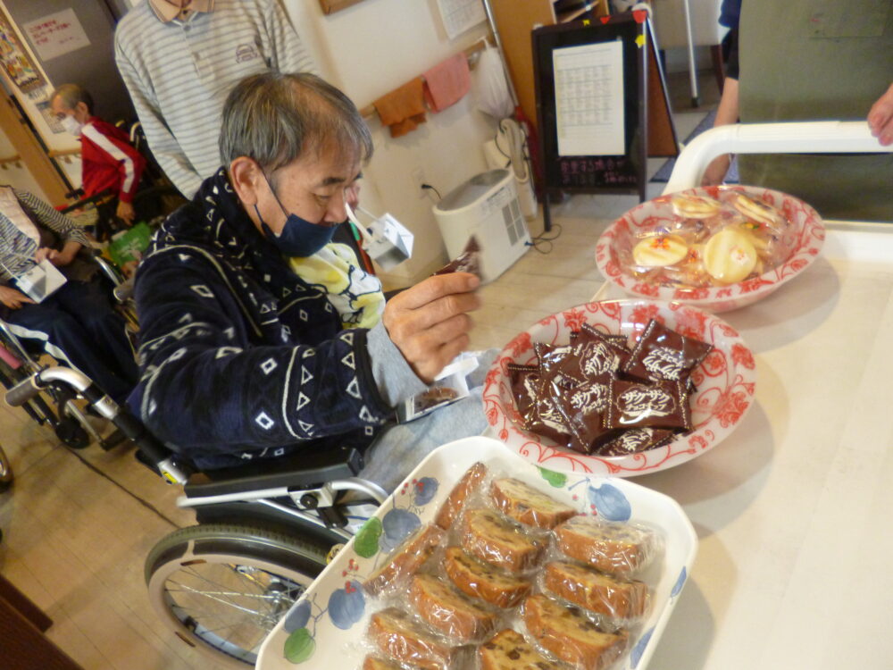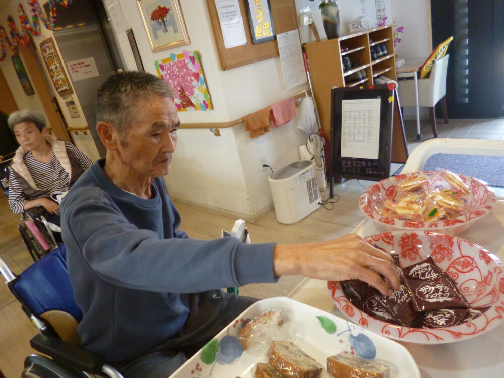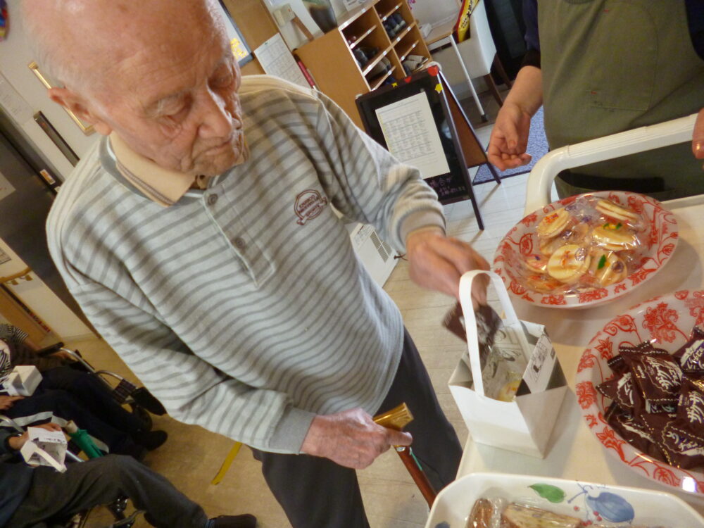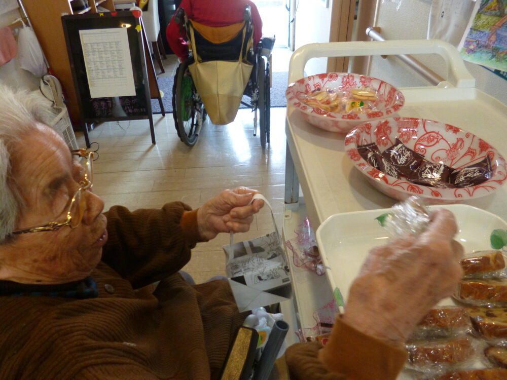 紙で作ったかごにお菓子を入れて召し上がって頂きました♬