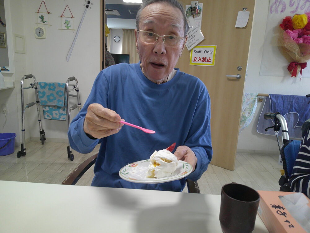 お祝いして皆でケーキを