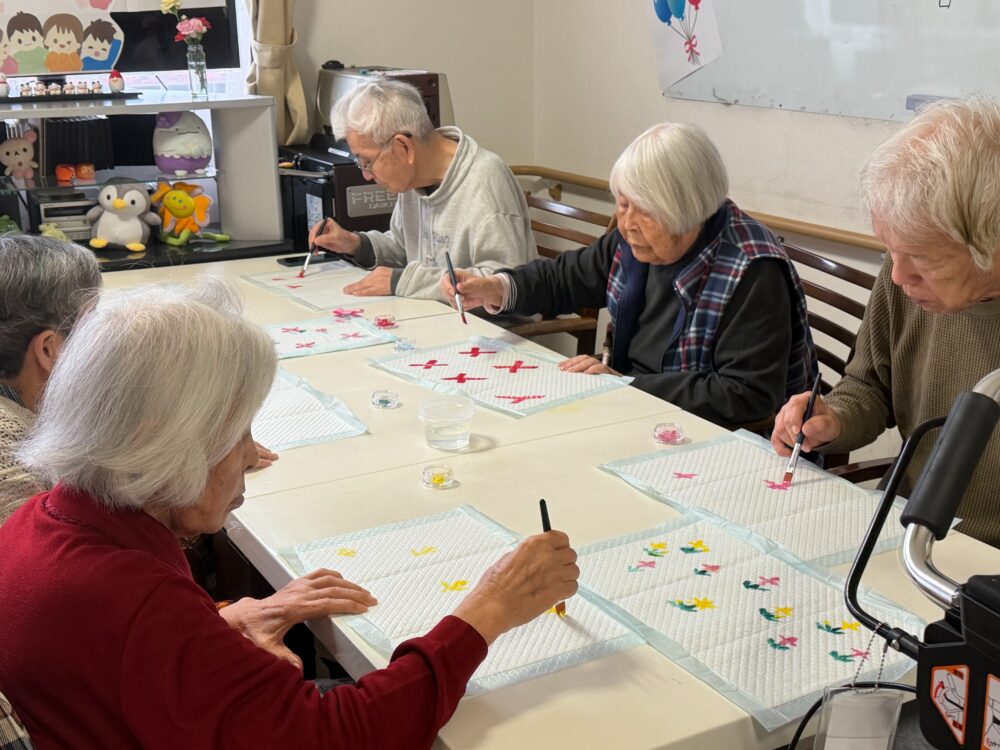 2026.04.02 ハートリンク西尾 🌈絵具遊び🖌 絵具で好きなように デザインしてもらいましたよ お花のデザインが 描きやすかったかな🌷 いろいろ個性があって みなさん素敵ですね💕 こんな感じに 壁面に飾りました🌈 楽しいひとときでした🥰 一覧ページに戻る