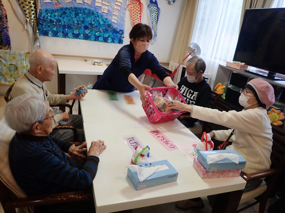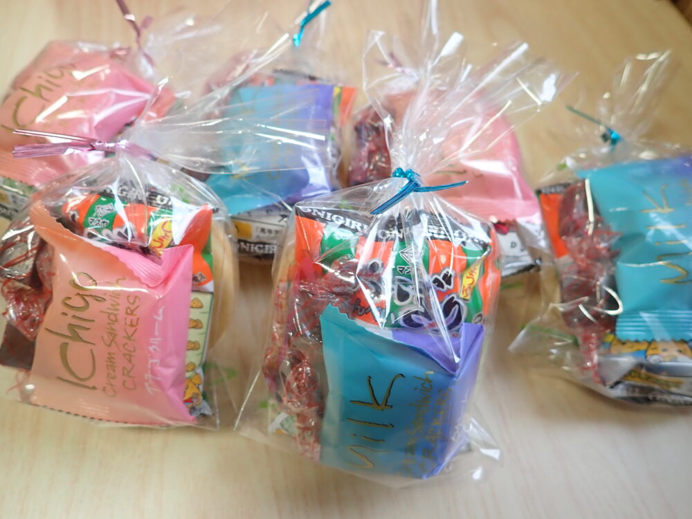 おやつでは、ラッピングしたお菓子の詰め合わせ♬