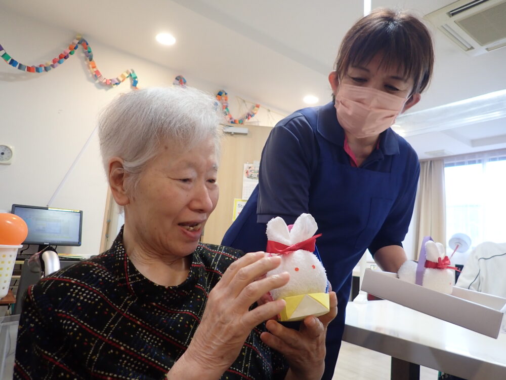 タオルで作ったうさぎ🐇を母の日のプレゼントを