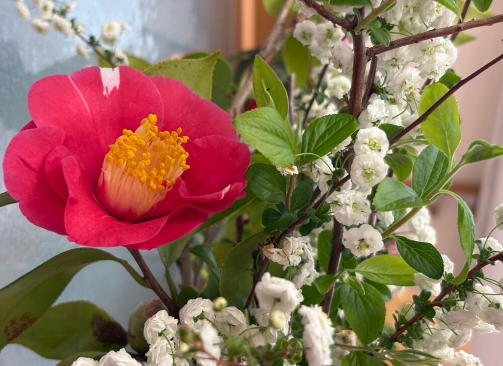 椿の花も蕾からすぐ咲いてくれました😍