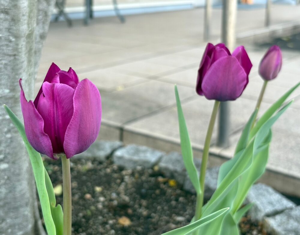 外の花壇には上品な色味のチューリップ🌷