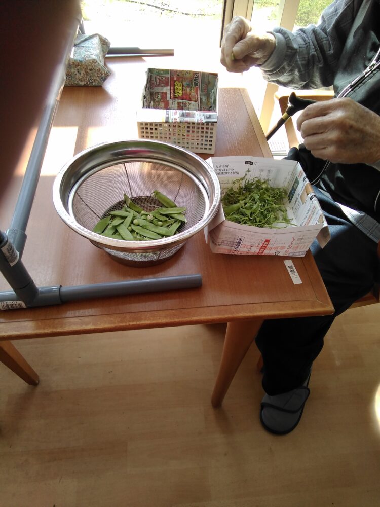2022.04.16 ハートリンク岡山北 お豆~~! みなさんの喜ぶ顔が見たくて、冬に豆の種を蒔きました。 今年初挑戦です! そして・・・ 見事期待に応えて大きく伸びて、いっぱいお豆をつけてくれましたヽ(^o^)丿 きぬさやの筋を取って下さり、職員さんが美味しく味付けしてくれて、昼食に^^ とーっても皆さん喜んで下さいましたのです(^^♪ まだまだこれからも食べれそうですヨ そら豆も花を咲かせています! お楽しみに~! 一覧ページに戻る