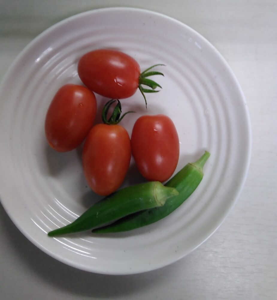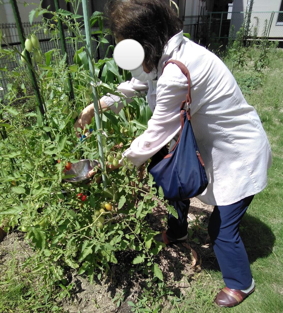 入居者様と一緒に庭のミニトマトとおくらを大量に収穫しました😋🍅