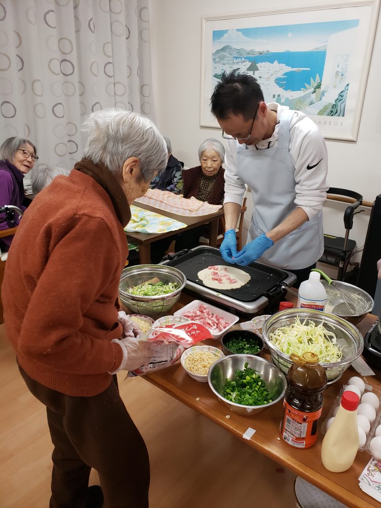 さあ始まりました~今日はお好み焼きを作りますよ~(^^)/H様が手伝ってくれています。手際が良いですね!!