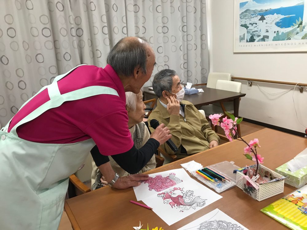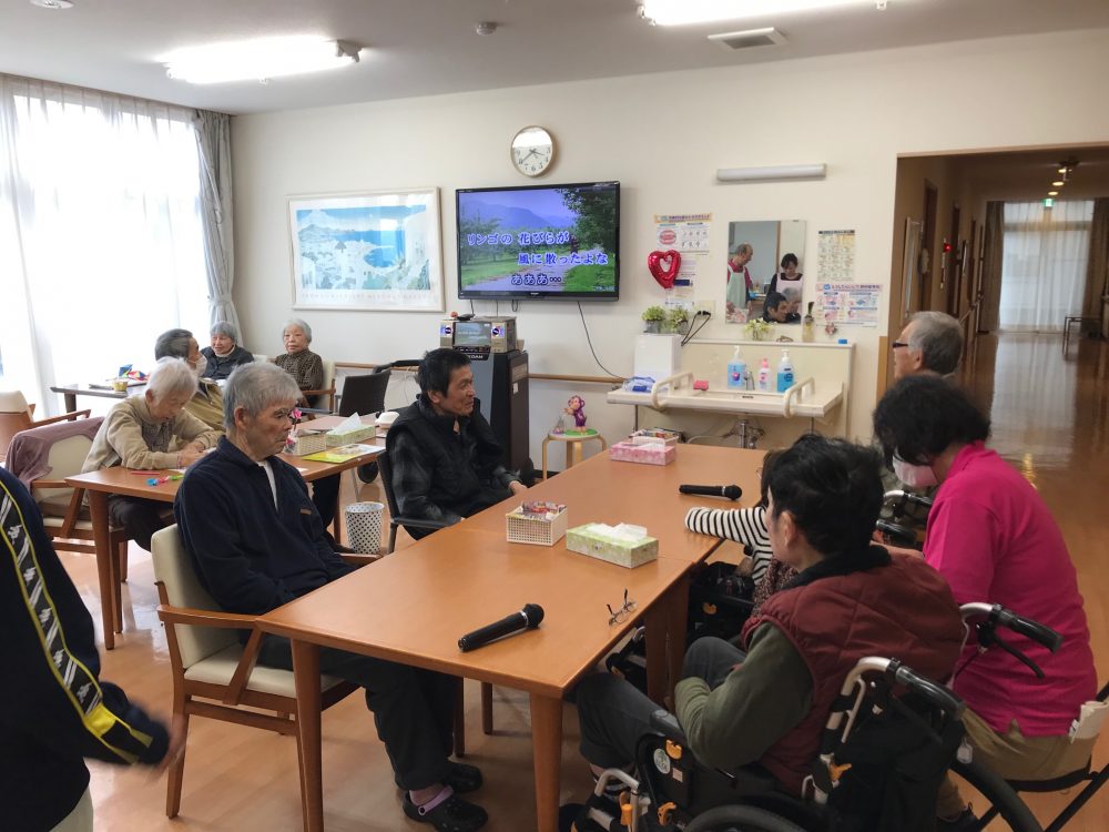 今日もおやつを食べ終わると恒例になっているカラオケ大会が始まりました~(^^)/やはりここはI様・U様がスタートを飾ります。