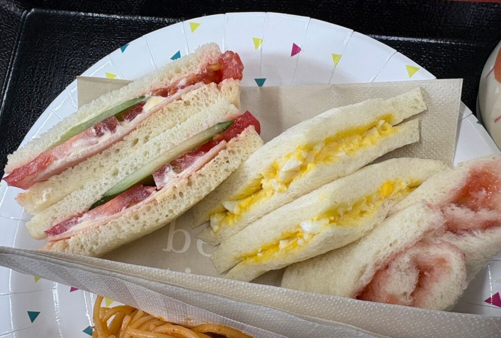 たまごサンド、いちご🍓ジャムサンド、ハムきゅうりトマトサンド🥪