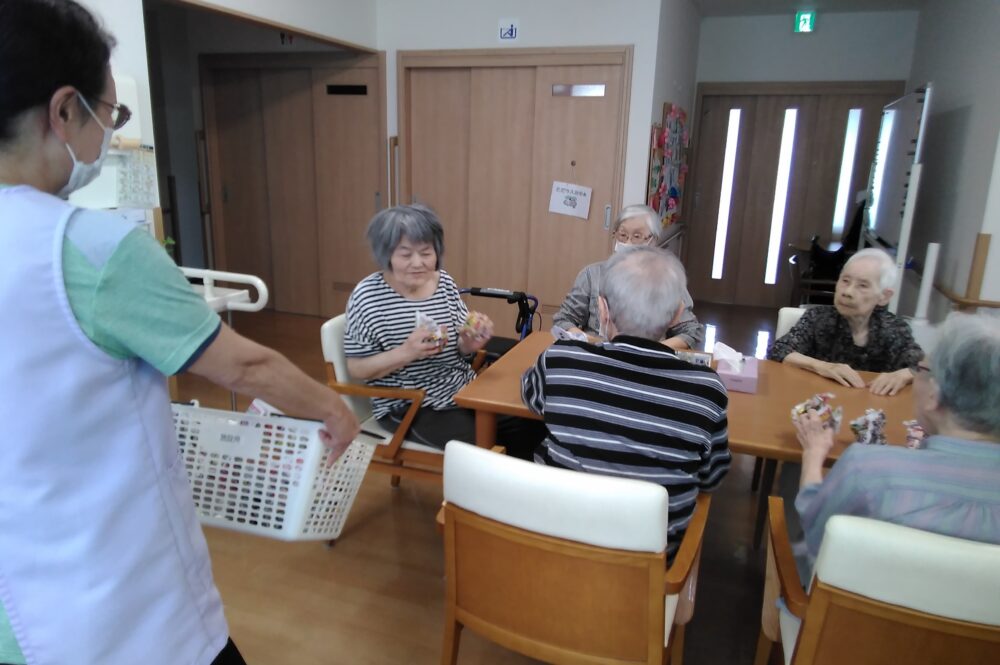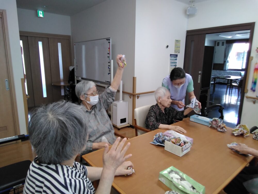 先日のレクリエーションの時間にチラシ丸めゲームを行いました~😆✨