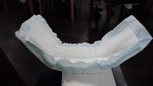 おしめを付ける身になれば、テープ止めが緩かったりずれていたら、パンツがゴムのない状態で履いているのと同じこと。サイズの合ったものを上手につけることは大切なことだと思いました。