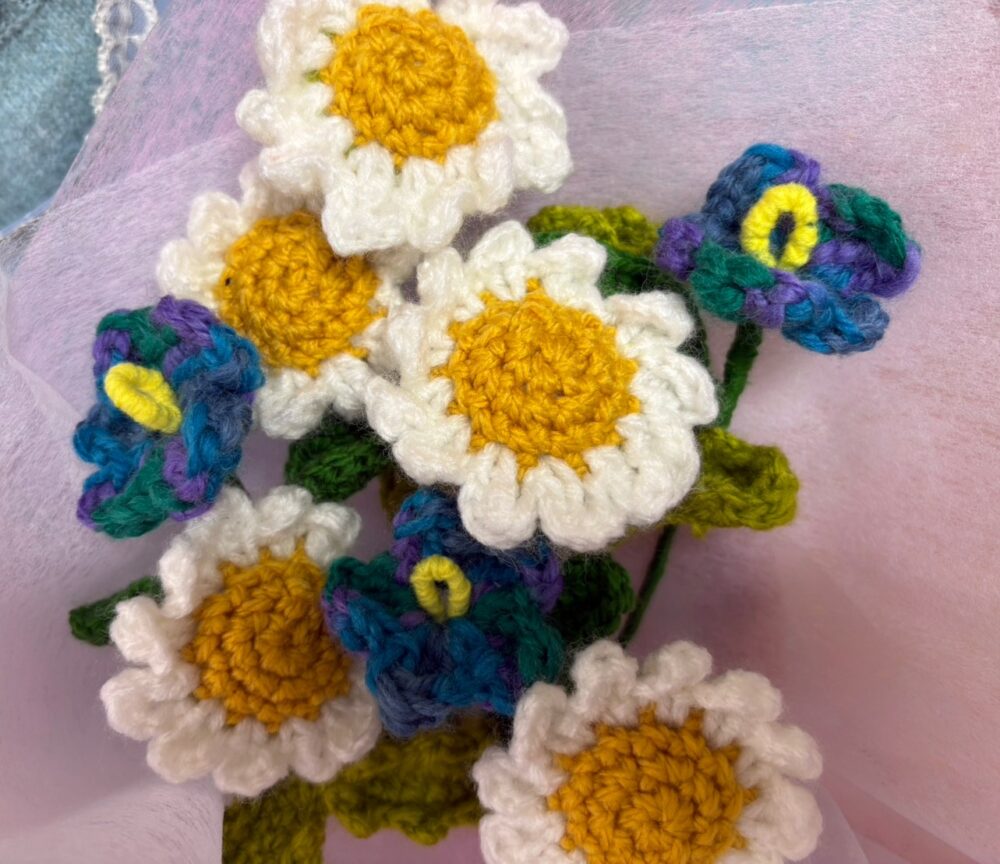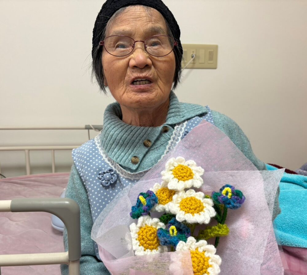 プレゼントは職員さん手作りの毛糸で編んだ花束です💐💖