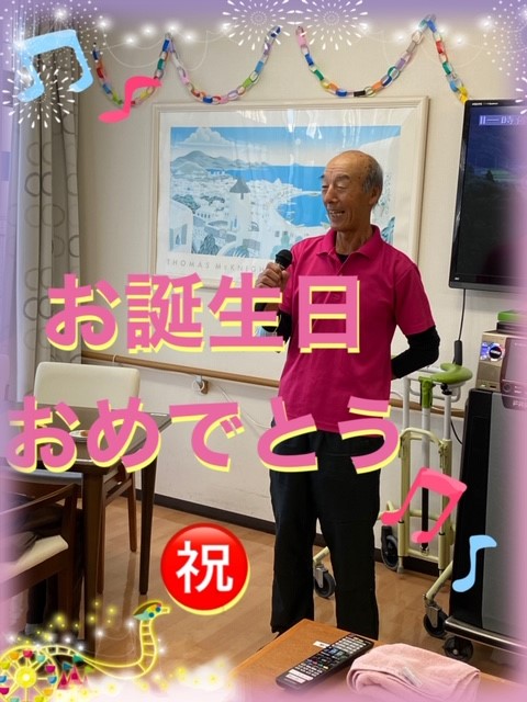 職員、利用者様でアカペラのハッピーバースデイの歌を