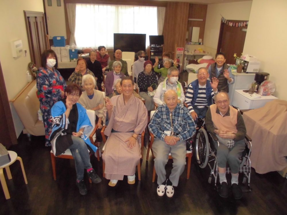 いろんな表情をする八宝斎さんに入居者様も真剣に聞き入ったり、笑顔になったりと、スタッフも浴衣姿で参加し、楽しいひと時を過ごさせていただきました♡