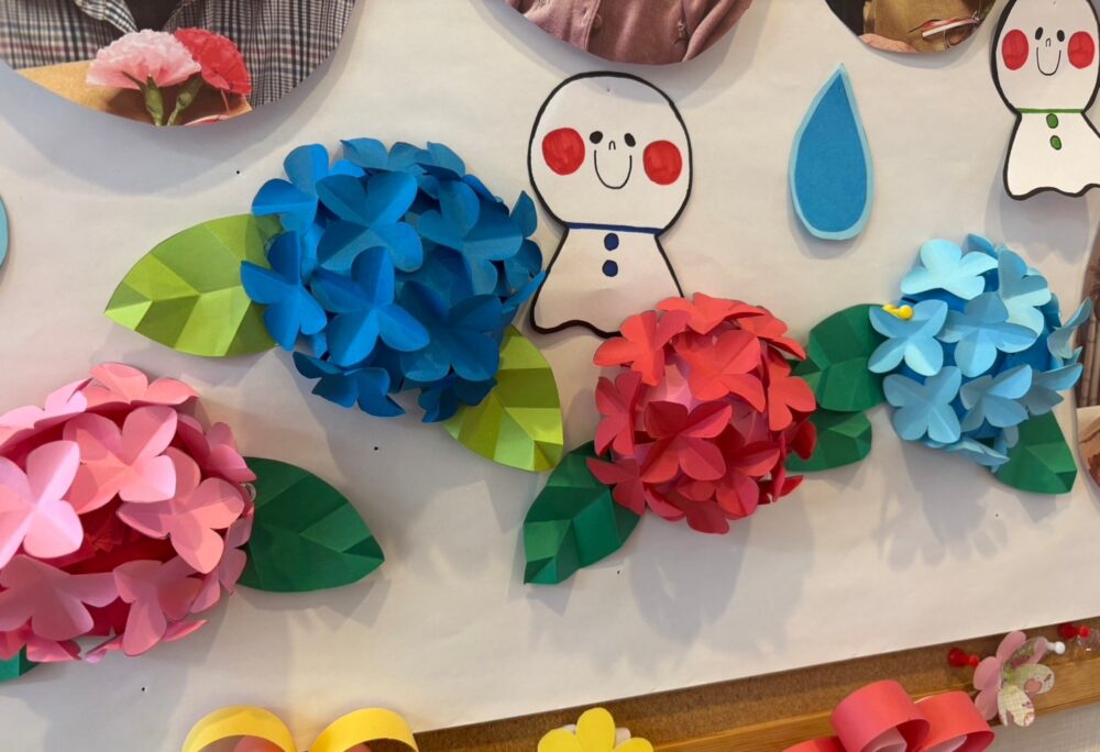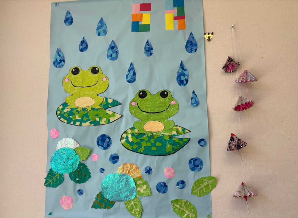2025.06.02 ハートリンク岡山北 6月壁画🐸☔ こんにちは。ハートリンク岡山北です♥️ 6月の壁画が完成しました~🐸☔ ちぎり絵でカエルと紫陽花を🥰 折り紙で番傘を作りました~☔ 玄関側も6月仕様に😉 お写真も入れ替えたのでご覧くださいね🥰♥️ 一覧ページに戻る