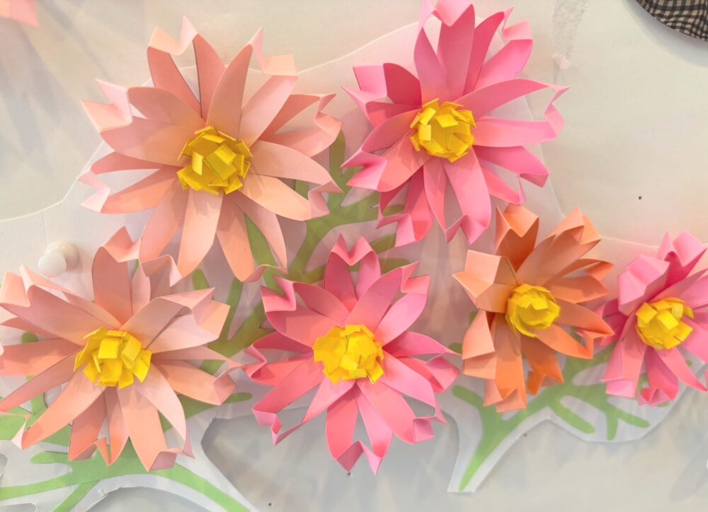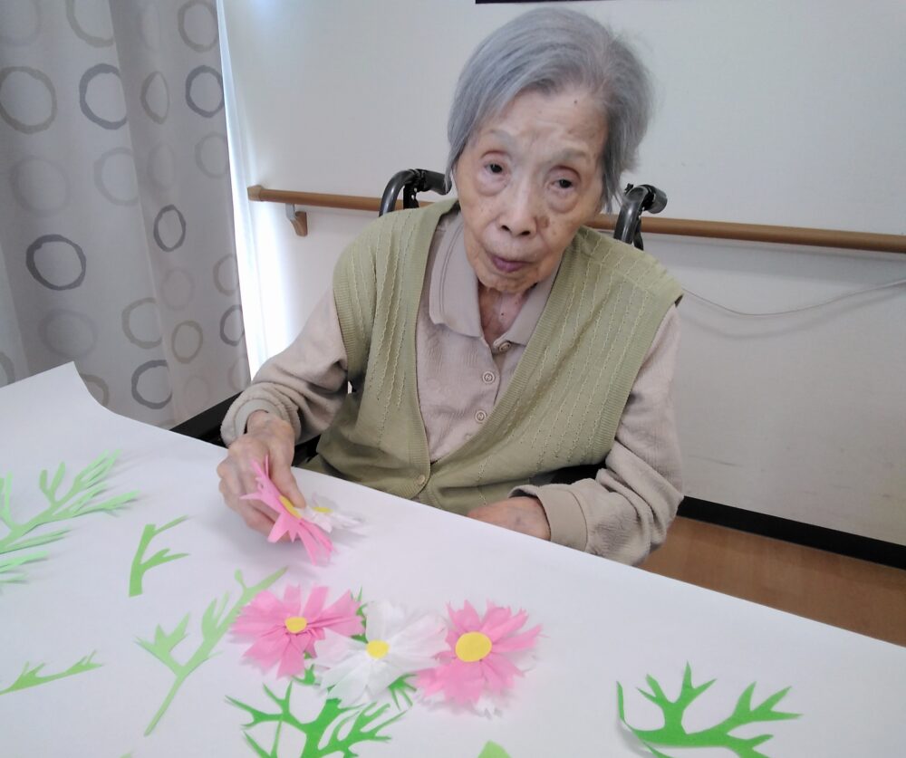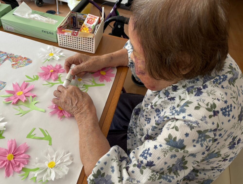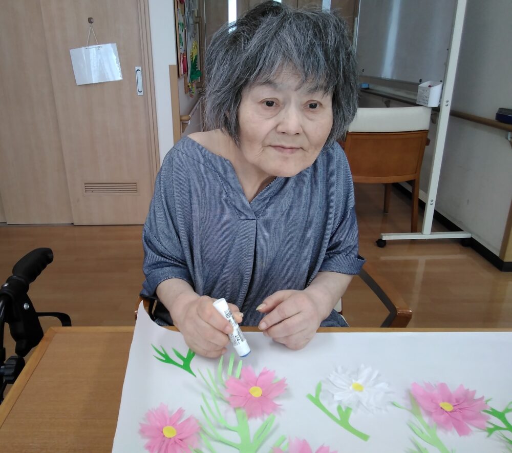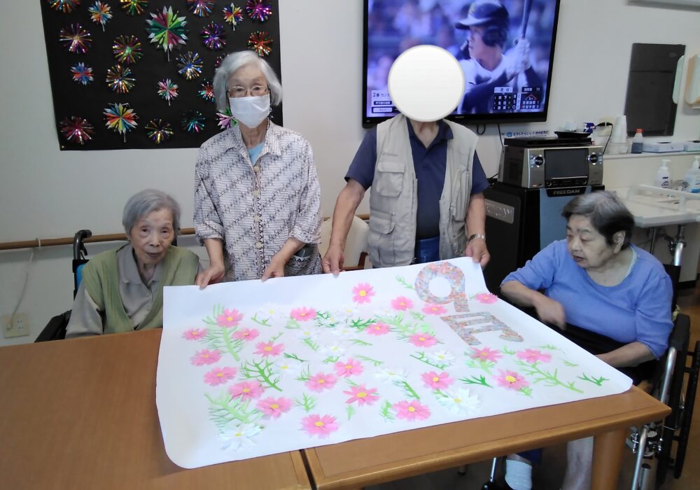 コスモスの壁画は入居者様にも協力していただいて