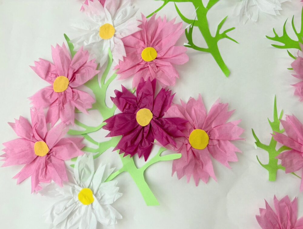 玄関側もコスモスを作りました🌸
