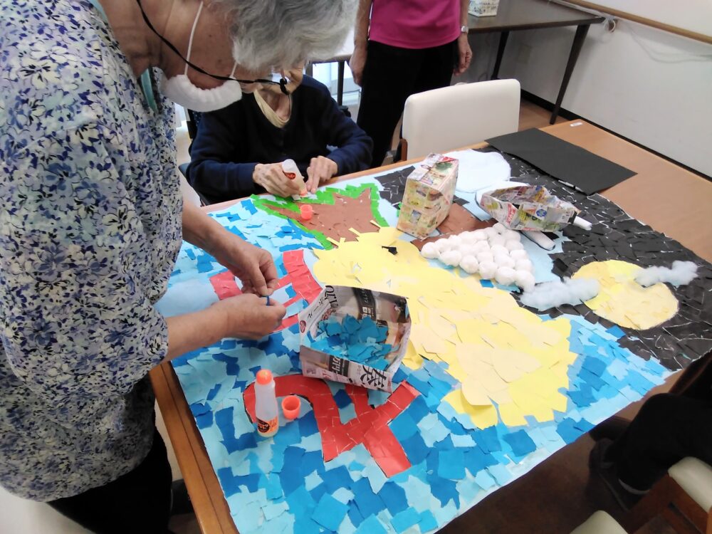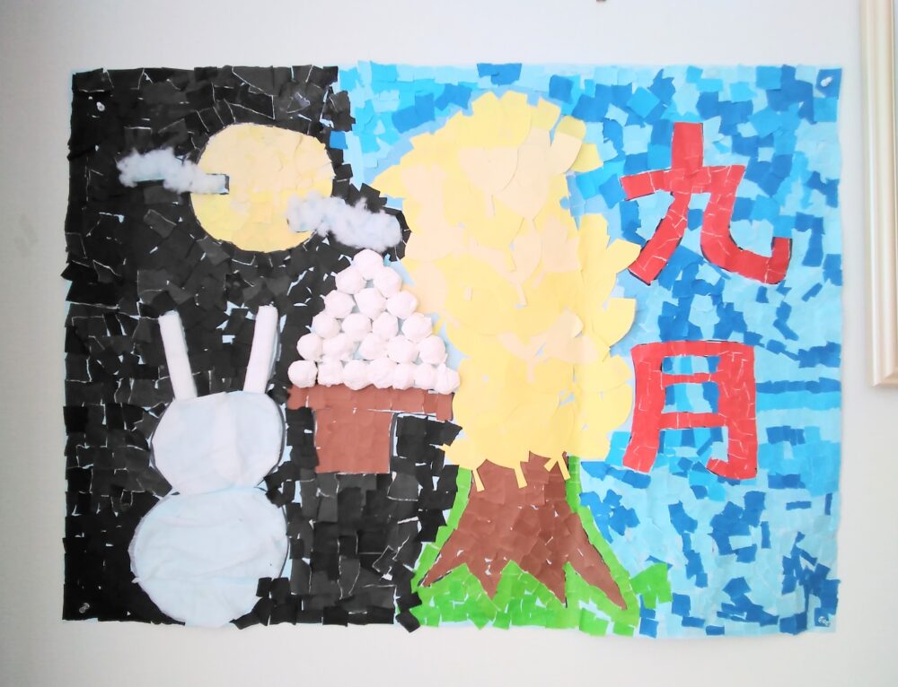 2023.09.06 ハートリンク岡山北 9月壁画🎑 こんにちは☺️ハートリンク岡山北です♥️ 九月の壁画か完成しましたー😆 皆さんで協力しあってコツコツ貼り絵を作りました🥰 1枚1枚丁寧に貼られていました😉 おかげさまで大作が出来上がりました~💗 一覧ページに戻る