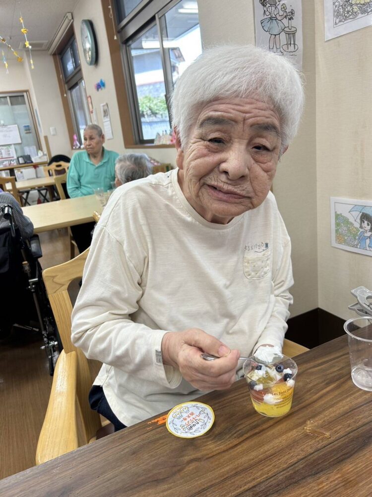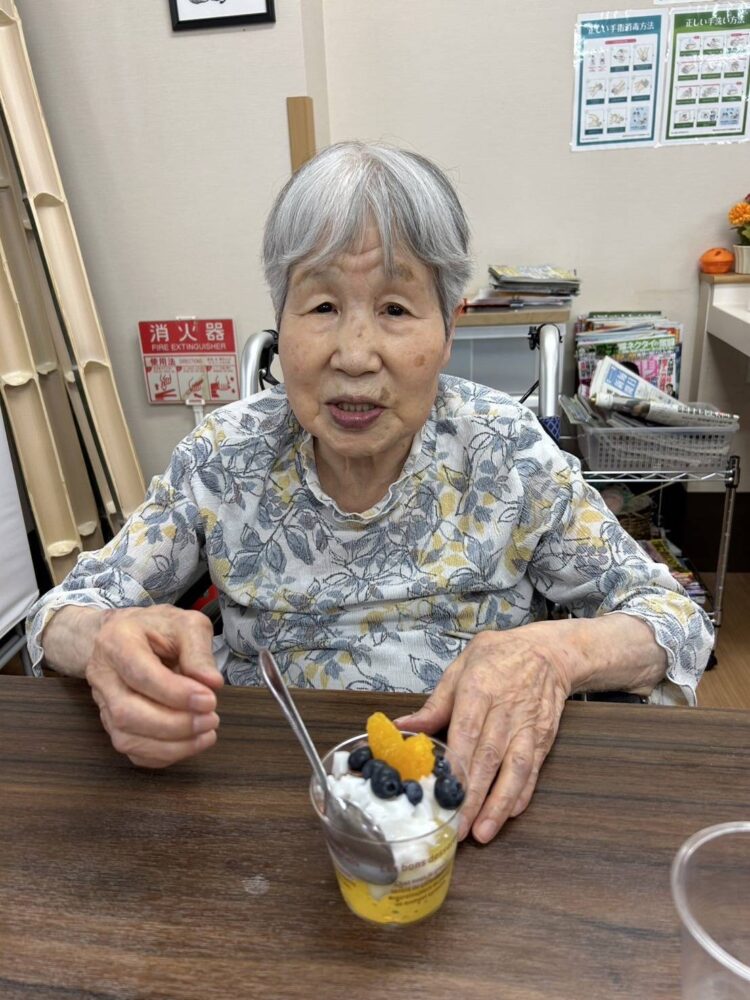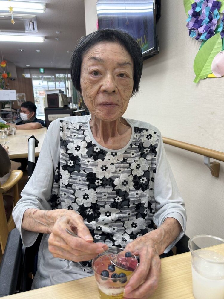 トッピングのブルーベリーは入居者様のご家族様から頂き、摘みたてホヤホヤです(*^^)🎵