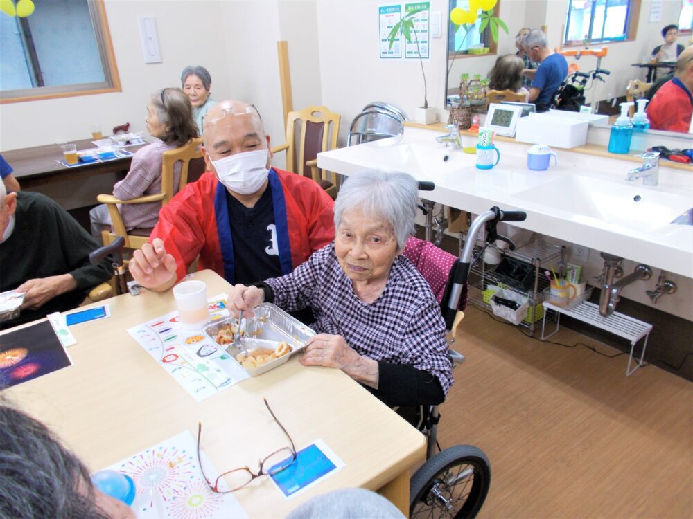 2021.08.23 ハートリンク西大寺 ハートリンク西大寺♥夏祭り 今回皆さんと夏祭りを開催致しました。 まるで施設が露天のようになりました。 みなさんの食欲にスタッフ一同驚きでした。 美味しかったかな?! 😄 一覧ページに戻る