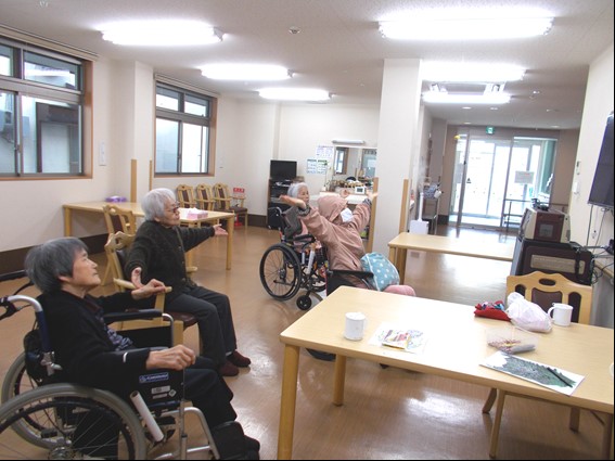 皆様 健康意識され毎朝スタッフと一緒に体操をがんばっています。